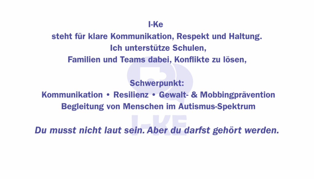 I-Ke vermittelt klare Werkzeuge und Strategien, die Kommunikation, Resilienz und Autismus-Begleitung für Schulen, Jugendliche und Organisationen stärken.